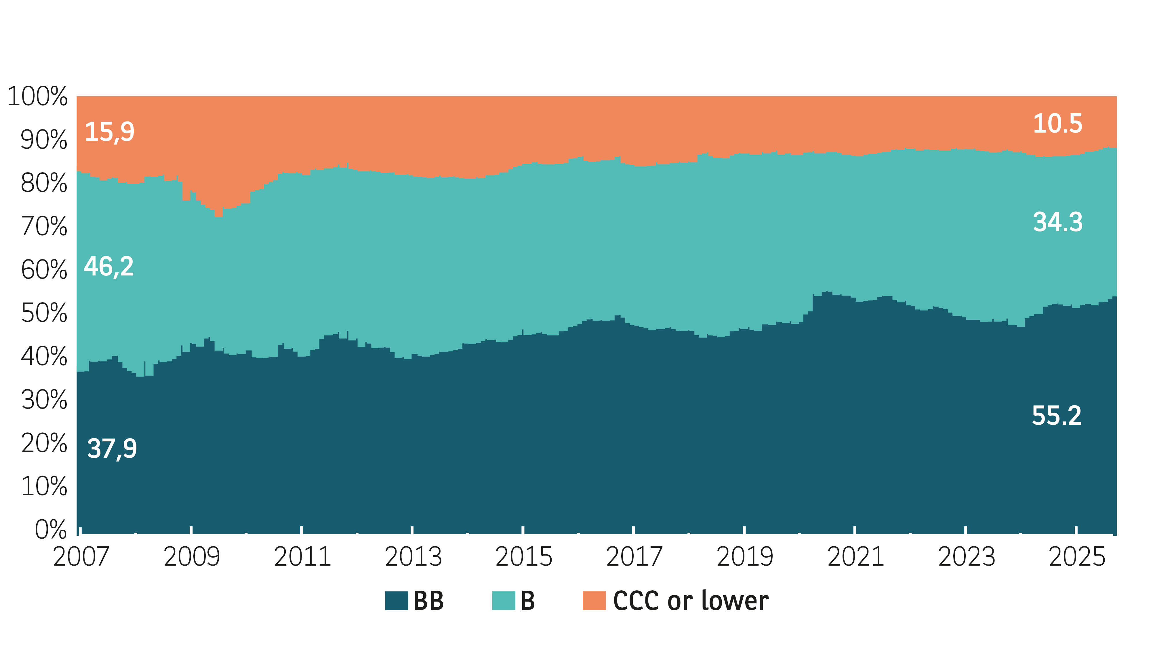 Exhibit 1: Composition of the US high yield bond market by selected ratings