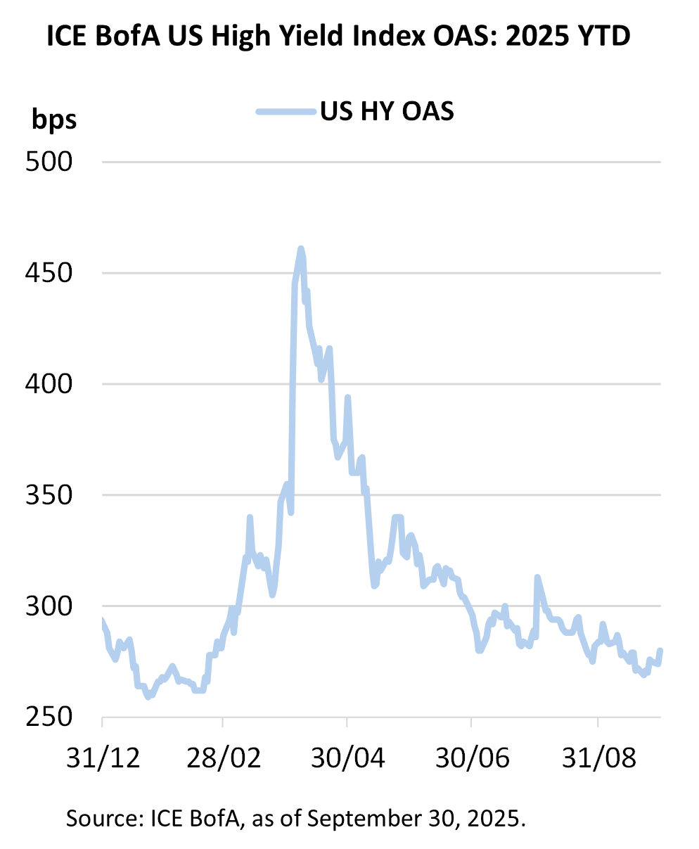 Following 2025’s volatile spring period, the US high yield (HY) market enjoyed a summer of relative calm. This came despite continued fears over US’ tariffs’ potential inflationary impact; a weakening labour market; rising tensions between the White House and key economic institutions; and the passing of the One Big Beautiful Bill – which could further widen the already burgeoning deficit over the coming years.1